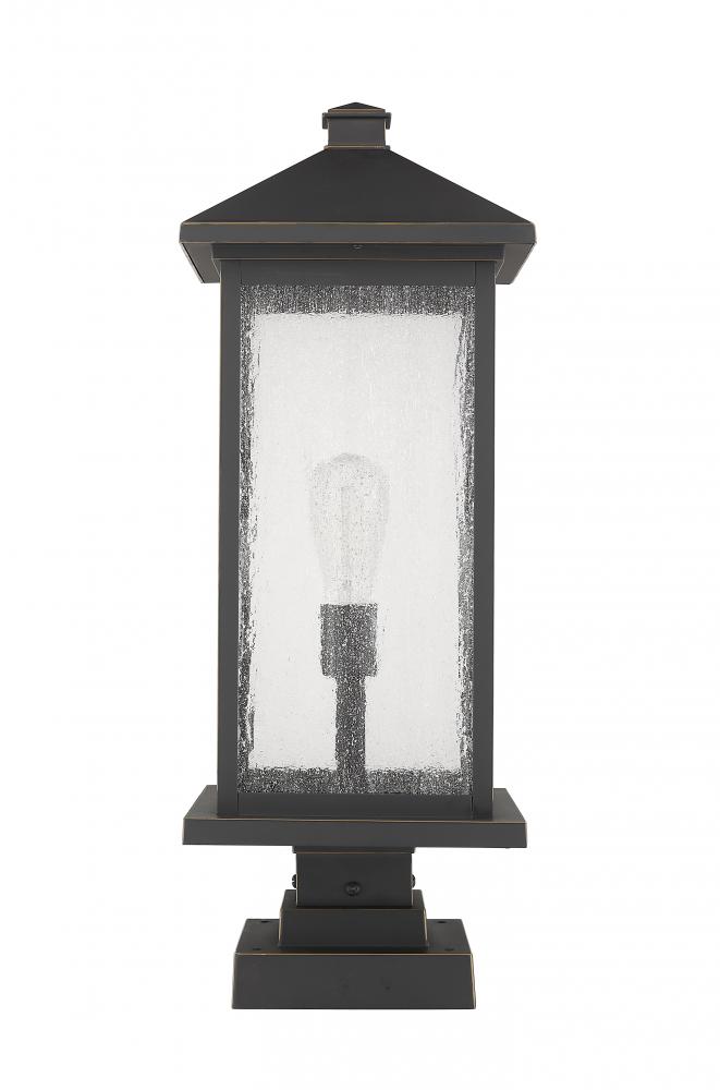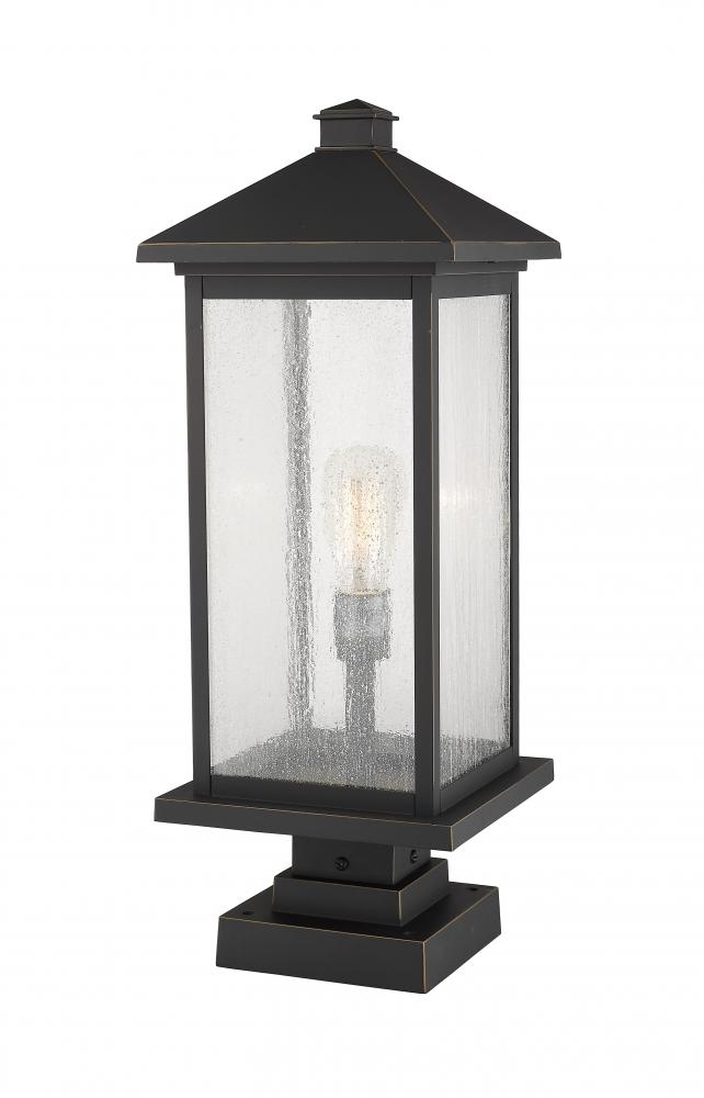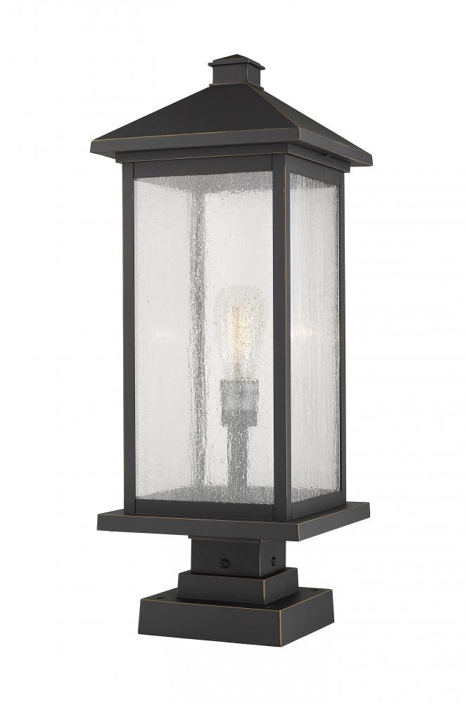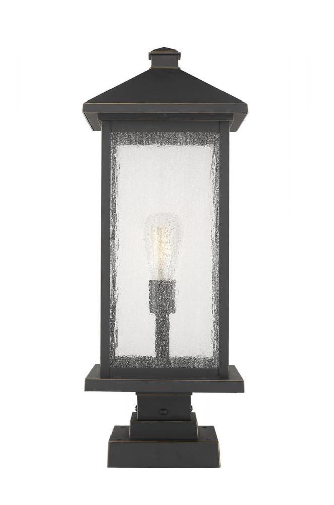 Combine rich hues with depth in this one-light post lantern. Great for an outdoor space, the sleek frame radiates with a rubbed bronze finish and a clear seeded glass shade.