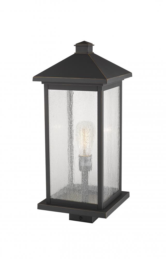 Rich details and sleek lines from this one-light post lantern offer a streamlined look to any outdoor space. Richly hued outdoor rubbed bronze combines with clear seeded glass to add dimension and radiance.