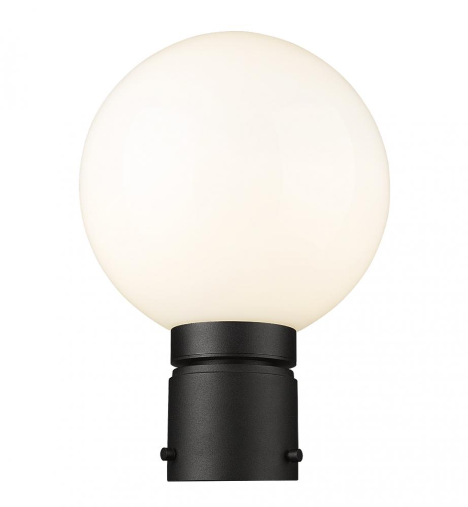 From the Laurent collection comes a classic look in exterior lighting rooted in Mid-Century Modern fare. This one-light post mount fixture maintains an elegant simplicity with an aesthetic reminiscent of retro village charm. Crafted of black finish aluminum, its simple base is made more festive when topped with a whimsical opal glass globe, creating artistry in lighting.
