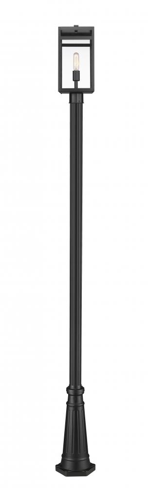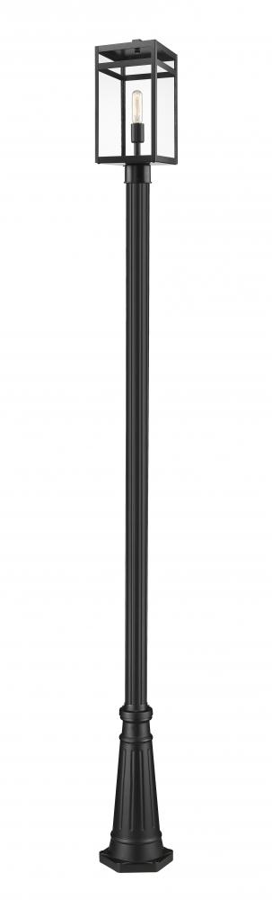 A romantic tapered base plays against the crisp, contemporary design of a box-style top, making the Nuri one-light outdoor post mounted fixture a great find. Add pizzazz and versatility to any space with this light blending a frame and post made of black finish steel and glass panels that give a glimpse of charm in a slender bulb base.