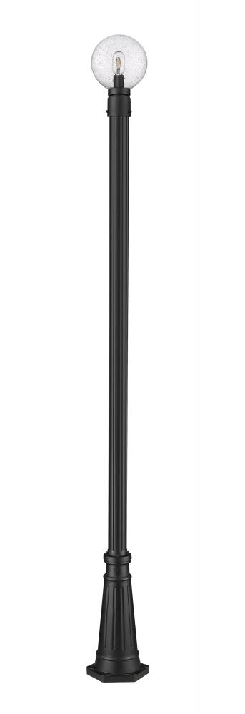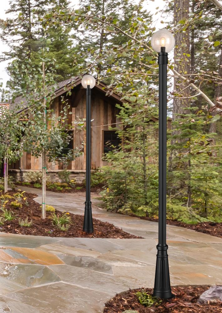 Village charm infused in exterior lighting shapes a decadent look with style. Emulate a retro feel in a front yard or walkway with this epic one-light outdoor post mounted fixture fashioned of versatile black finish aluminum in a frame with an ornate tapered base. A delicate clear seedy glass globe creates ultimate elegance.