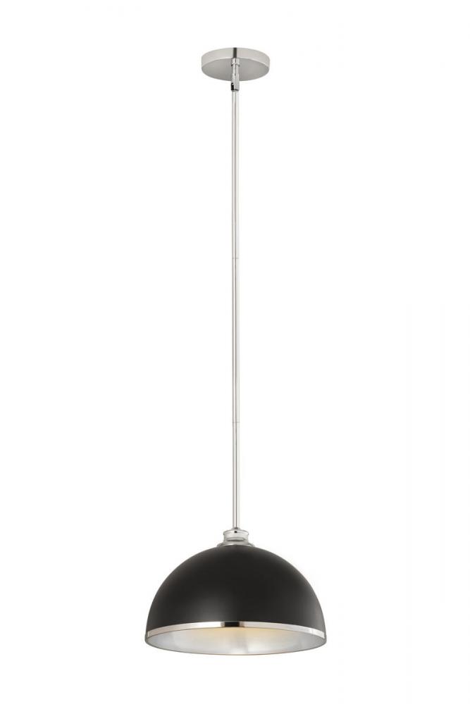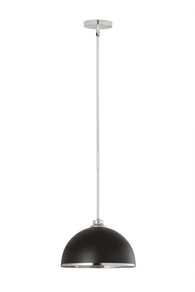 Chic, modern vibes add a stunning look to a custom kitchen, living space, or bedroom with this domed metal one-light pendant. A domed shade crafted of matte black finish stainless steel is trimmed in shiny chrome finish metal with a chrome finish down rod and canopy. This updated pendant is suitable for a variety of d?cor schemes including farmhouse, modern industrial, and urban modern.