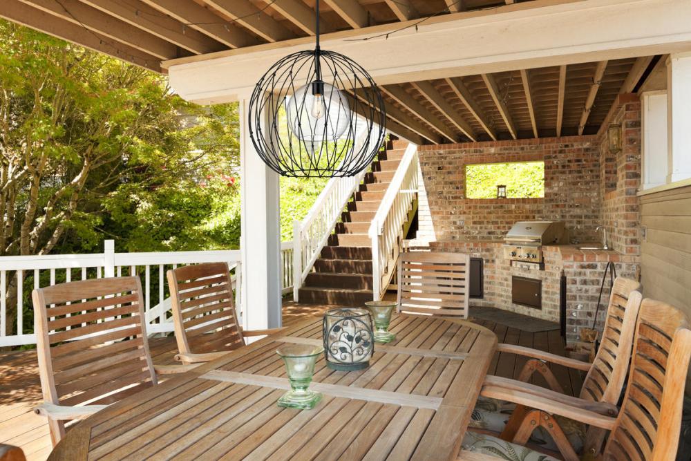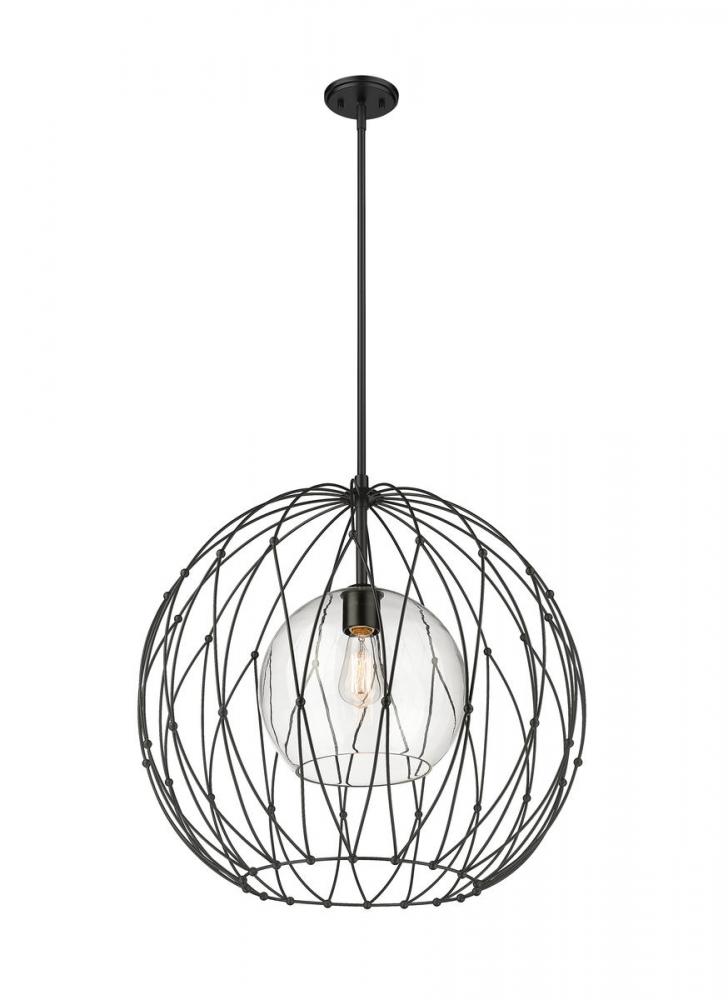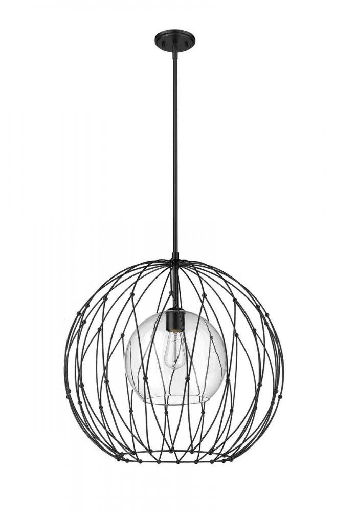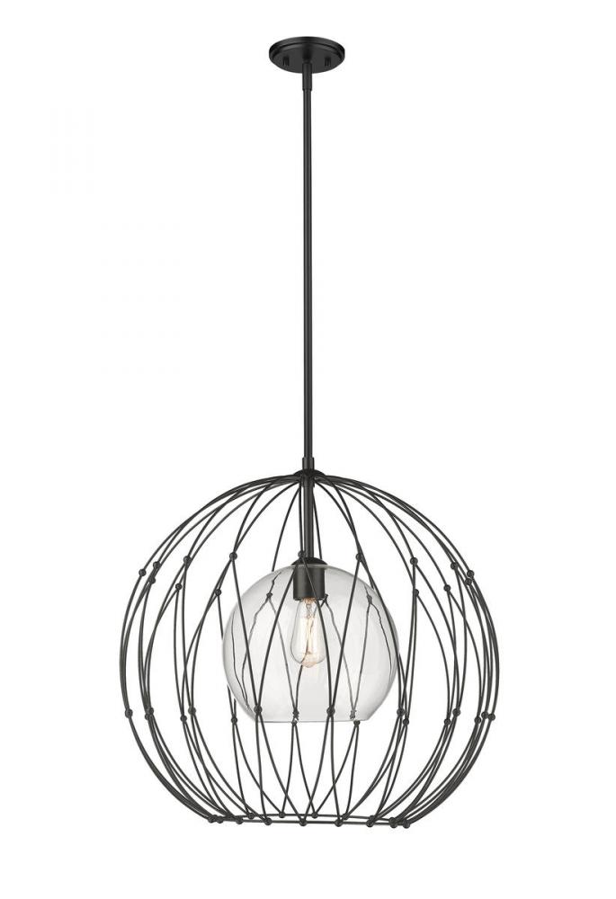 A modern take on a vintage feel, this damp-rated indoor/outdoor pendant will complement a variety of design styles from Mid-Century Modern to contemporary. The clear glass shade in a classic orb shape is surrounded by a beautifully handcrafted metal cage f