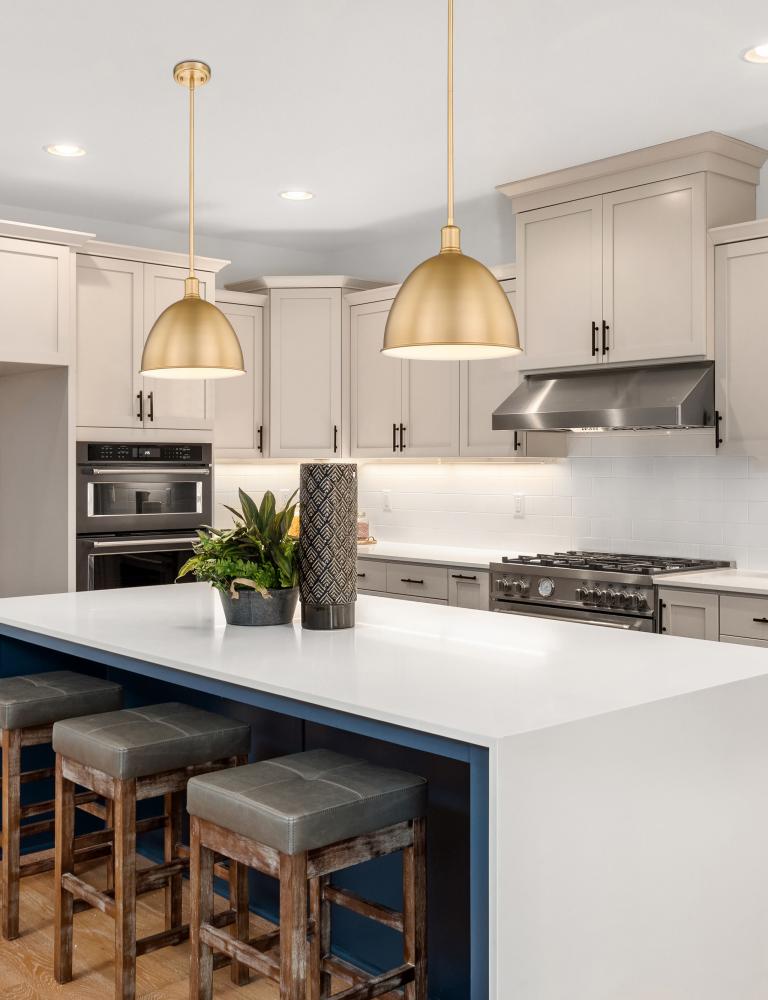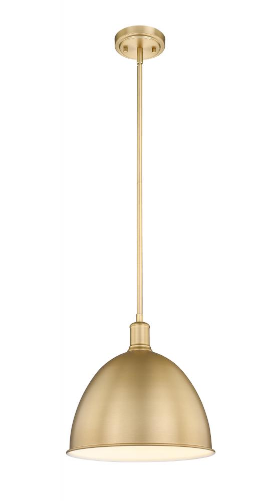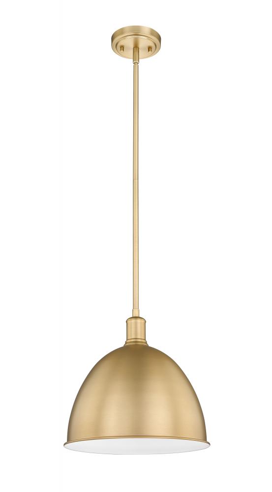 Give a gourmet kitchen a casual luxe look with this transitional modern farmhouse pendant. Designed with a warm and lustrous classic brass finish across a bell-like iron shade, this single light pendant lends a restoration style flair, reminiscent of schoolhouse or industrial lighting fixtures. Suspend this sleek urban-inspired pendant over an island, providing ample light for prepping and baking or simply creating a more inviting communal area for the family to gather.