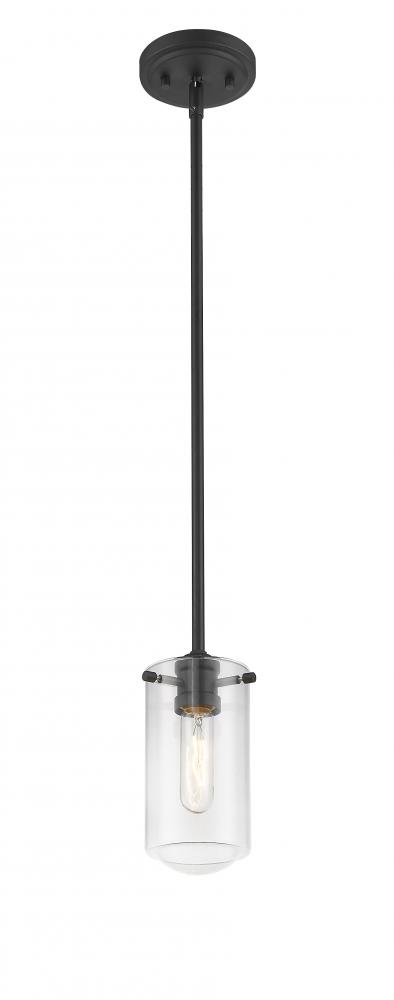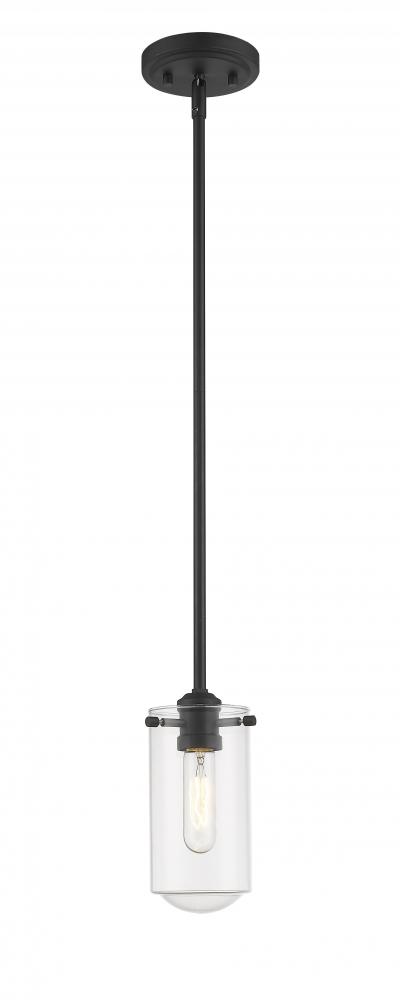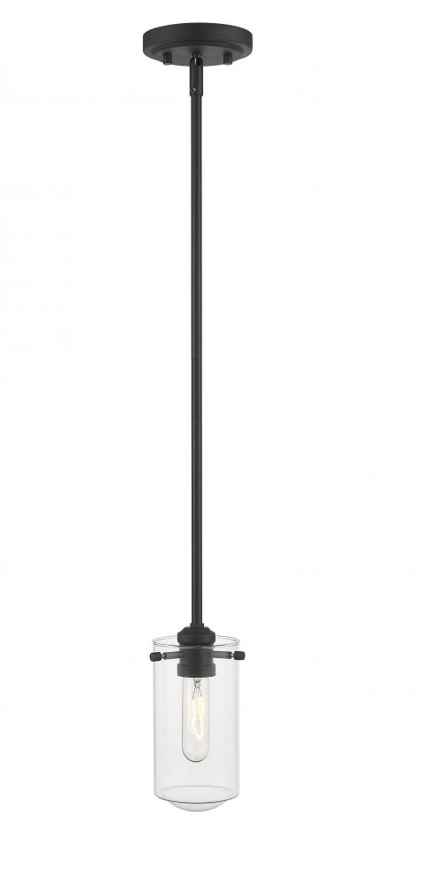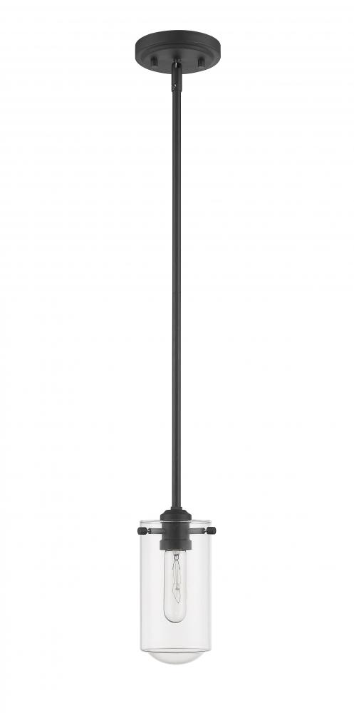 Stunningly sleek, this elongated island pendant features one light and clean lines. Radiate a bright glow from the clear glass shade and matte black metal arm.