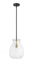 Gleaming brushed nickel accents blend with a sleek, matte black frame to give this single-light mini pendant a chic, modern look. Its clear glass shade casts a brilliant glow that beautifully illuminates any room.