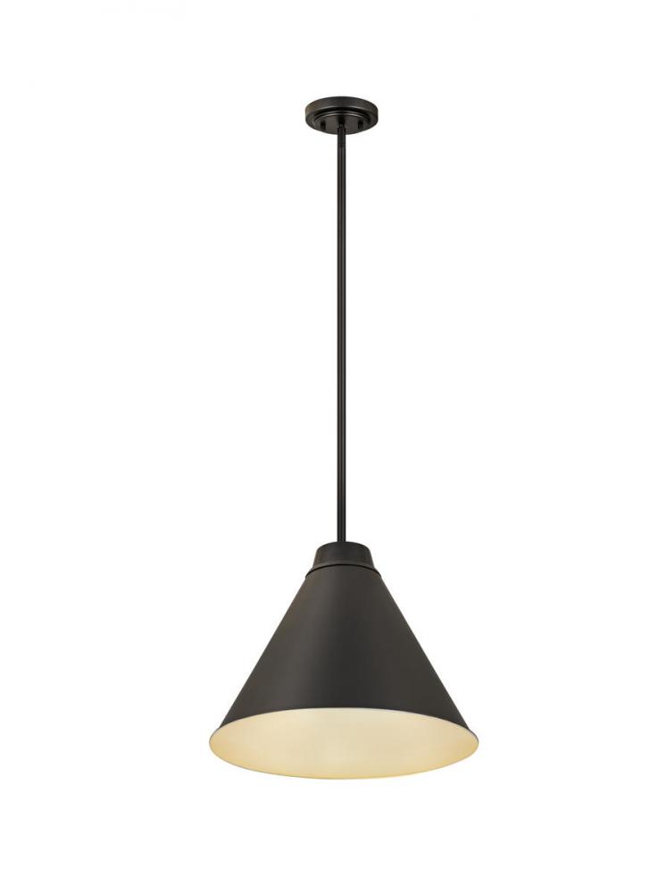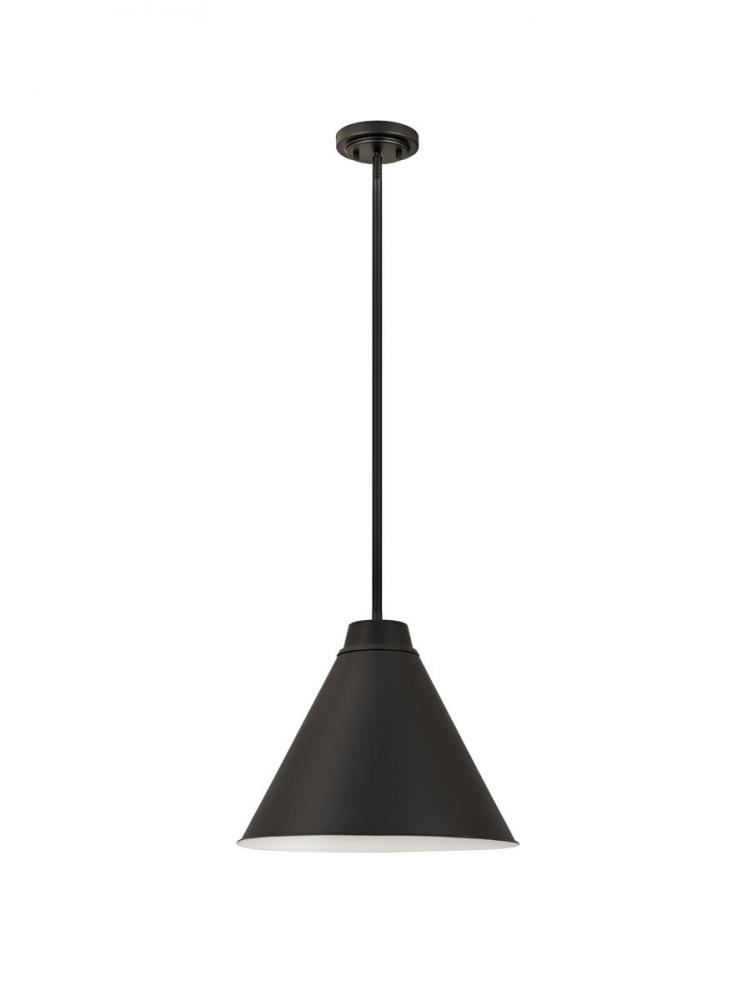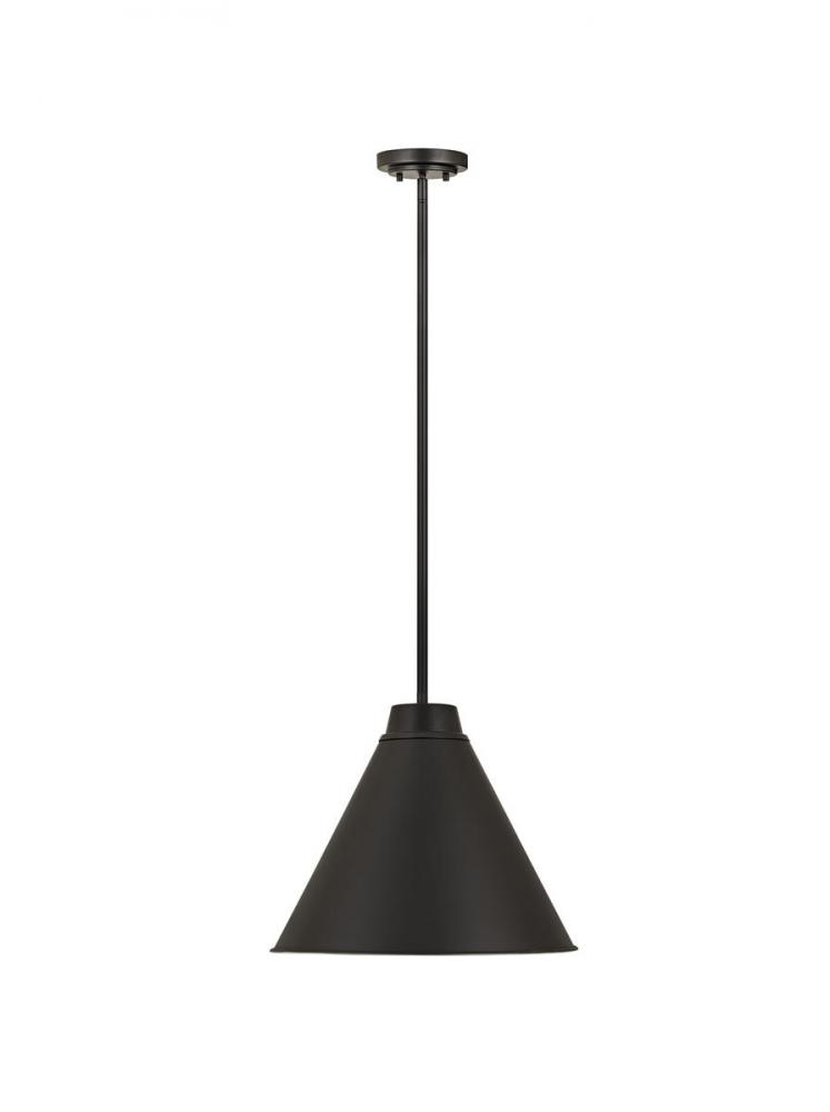 Choose an industrial-inspired look with the Eaton one-light pendant, a superb option for low-key lighting in a custom space. This pendant features a sleek conical silhouette with a shade, down rod, and canopy crafted of iron and given a bold matte black finish. Line up a collection to illuminate a kitchen island, or place this light individually around a living space for an easy, casual feel.
