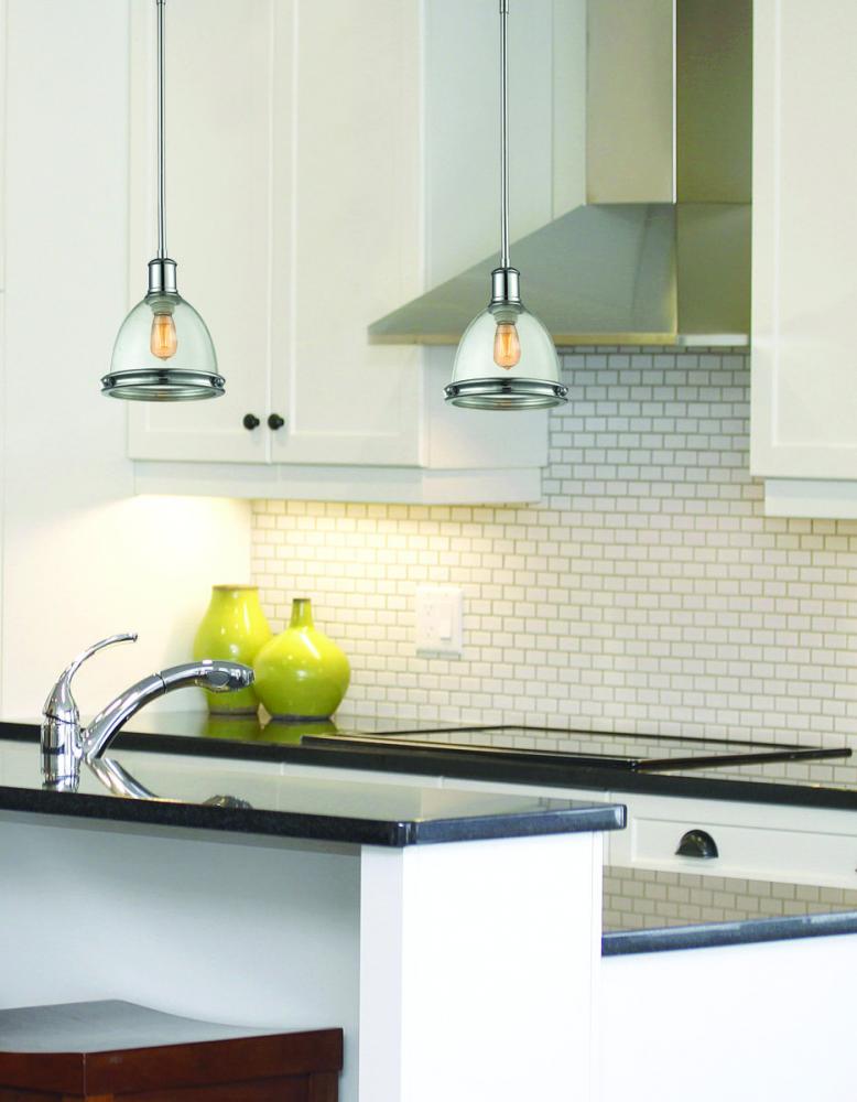 The simple vintage design of the Mason family is a warm welcome to any style in your home. Available in bronze, olde bronze, brushed nickel and chrome finishes. 13? pendants with metal and matte opal shades include a frosted glass diffuser.