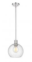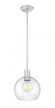 A handmade-inspired artisan quality presents itself in the clear seedy glass globe of this Mid-Century Modern light pendant. Creating a gorgeous illumination across spacious kitchen islands and gathering spaces, this welcoming, classically designed single light pendant also offers a luxe metallic touch with its warm olde brass finish steel suspension rod and round disc-shaped plate mount. The orb-like globe, with its Arts and Crafts era seedy glass design, also gives off a subtle texture and scintillation across tablescapes.