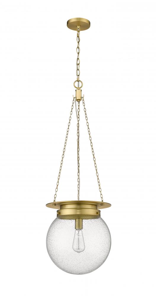 Easy does it in an interior setting devoted to trending relaxed style with a craving for artisanal design. From the Calhoun collection comes a one-light pendant mixing genres between Mid-Century Modern and schoolhouse, both easy on the eyes and versatile. With a warm heritage brass finish metal frame and accents and a delightful clear seedy glass globe, this pendant sheds ambient lighting in a transitional or contemporary living space or foyer.