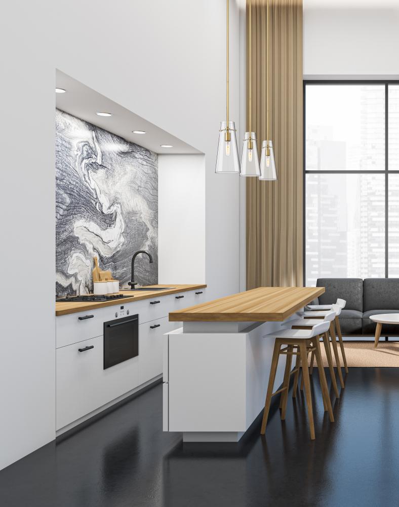 The appeal of the Kira pendant is clear. Its slim silhouette and choice of versatile finishes provides plenty of illumination while complementing nearly any design scheme. The Matte Black finish offers a classic, stately touch. It is also available in Brus
