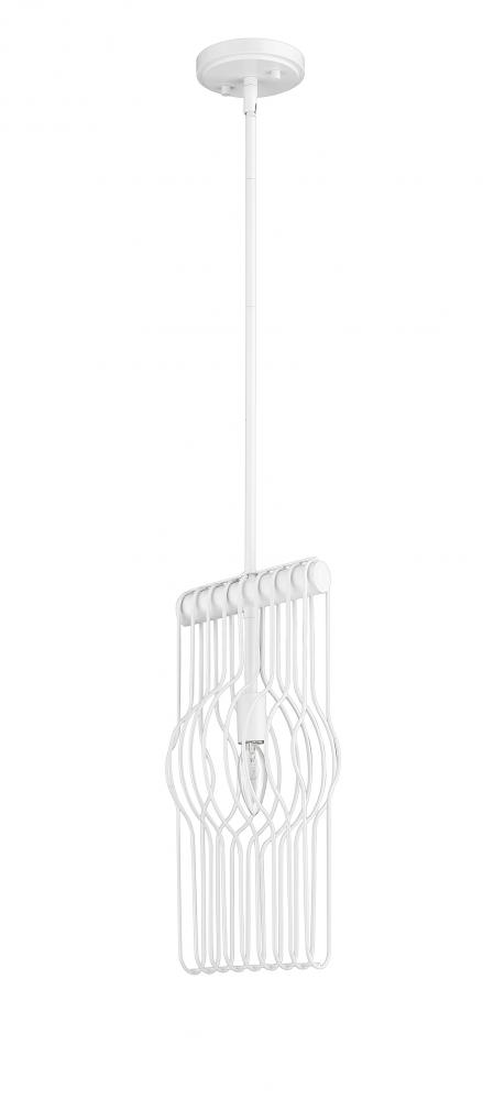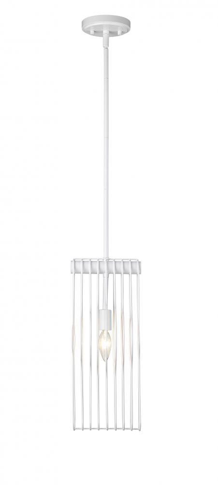 Doubling down on ultra-modern style, this single-light mini-pendant light becomes a focal point in a contemporary nook or reading space. Careful detailing yields a slick linear design of white finish steel rods and a glossy white finish frame. A charming candelabra bulb mount delivers a softening effect with pure style.