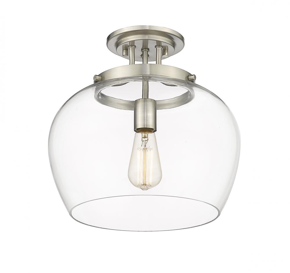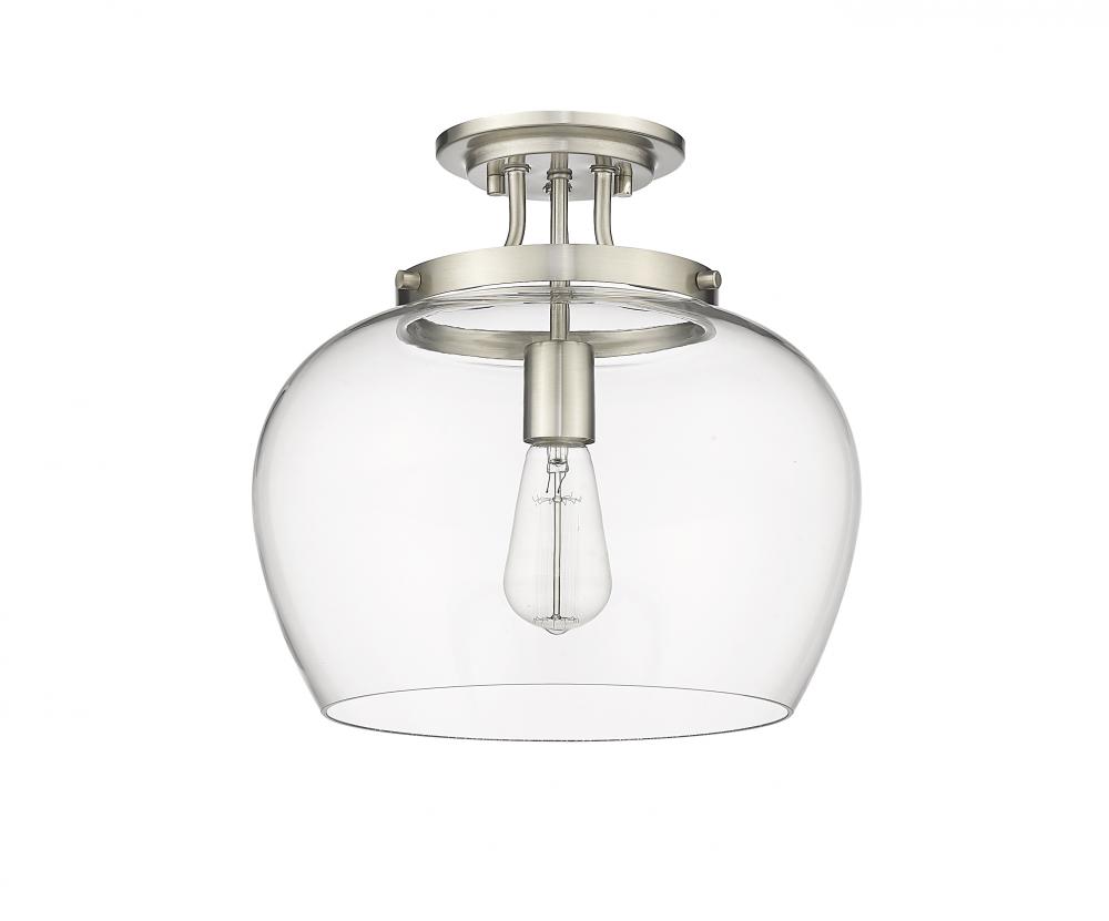 Reflecting an upscale hint of Mid-Century Modern style, the Joliet single-light flush mount ceiling light creates a simple yet sophisticated statement in a modern or transitional space. Kitchens, hallways, and bedrooms come to life with the shapely silhouette of a large Bordeaux glass shade and an industrial-inspired frame crafted of brushed nickel finish steel.