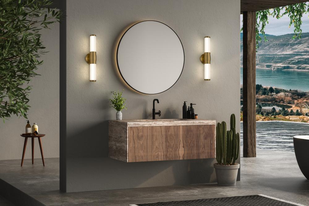 Slender ribbed glass diffusers and a stepped design on the metal arm bring a modern flair to the Warwick bath collection. These fixtures are equipped with the latest energy-saving LED technology, dimmable, light color selectable (5 choices), and a 5-year