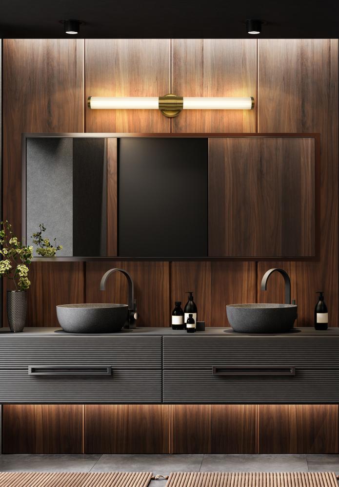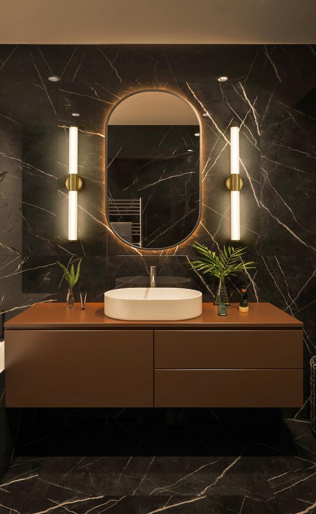 Slender ribbed glass diffusers and a stepped design on the metal arm bring a modern flair to the Warwick bath collection. These fixtures are equipped with the latest energy-saving LED technology, dimmable, light color selectable (5 choices), and a 5-year