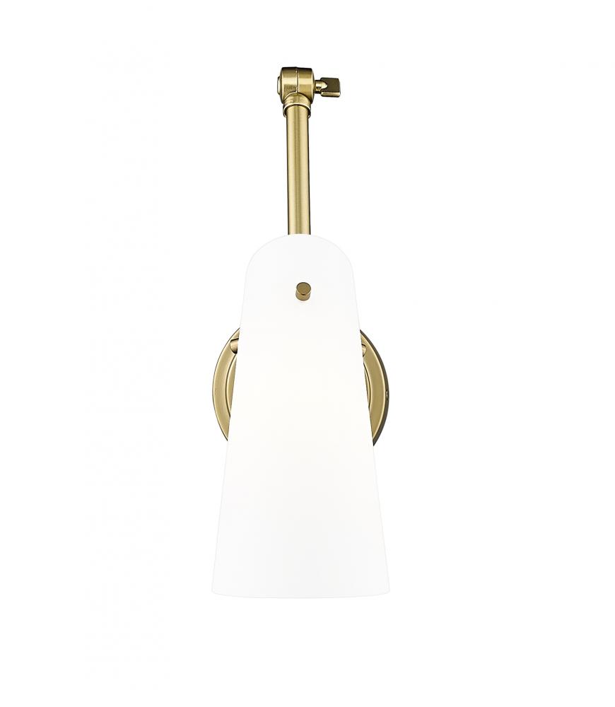 The Julia wall sconce, with its neutral white shade and contemporary look, boasts the convenience of adjustability due to an articulating arm for positioning the light exactly where needed. Available for hardwire installation or with an optional cord and p