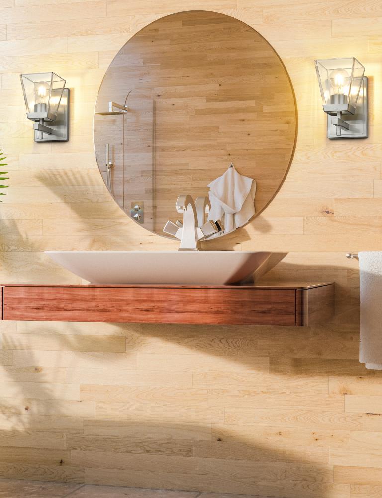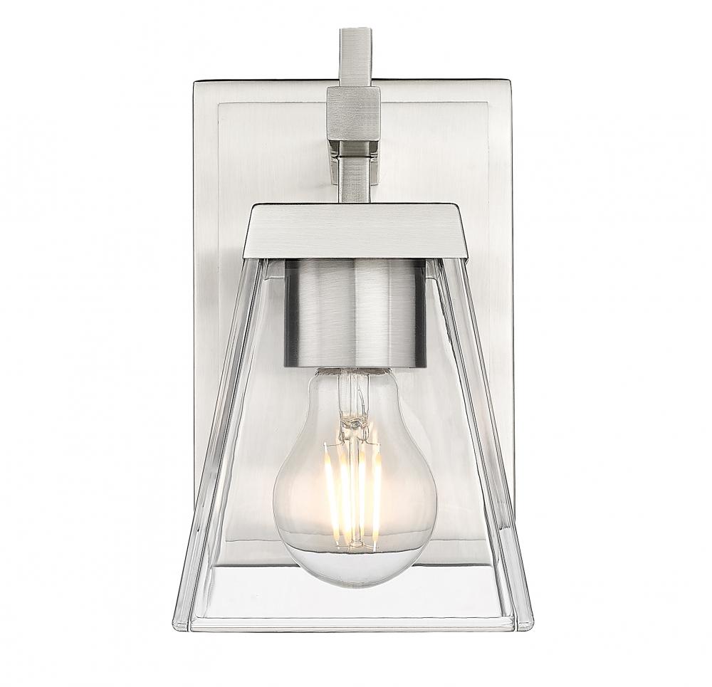 Flared glass perfectly accentuates the clean precision of a modern one-light wall sconce. From the Lauren collection, this sleek design is deceptively simple, delivering a flared clear glass shade topping a clean-lined frame in a gleaming brushed nickel finish that offers contemporary ambiance to a wide variety of spaces and interior designs.