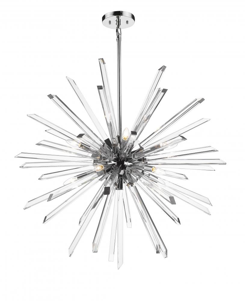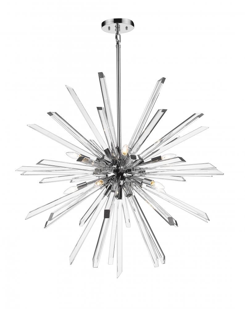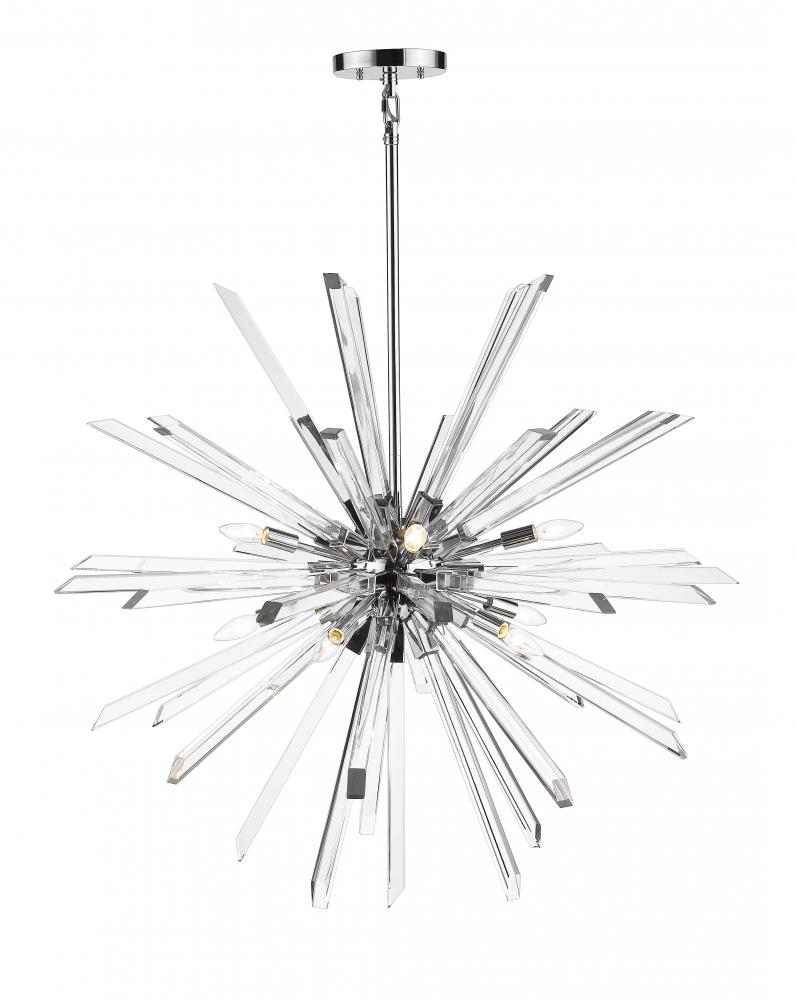An explosion of beautiful crystal arms extend forth in the Burst collection of crystal fixtures, like stars in the night. The reflective nature of the clear crystal and sleek Chrome finishes make these fixtuers sparkle intensely.