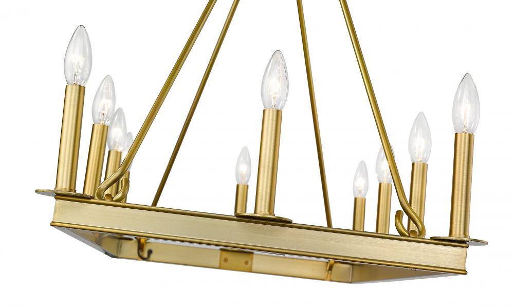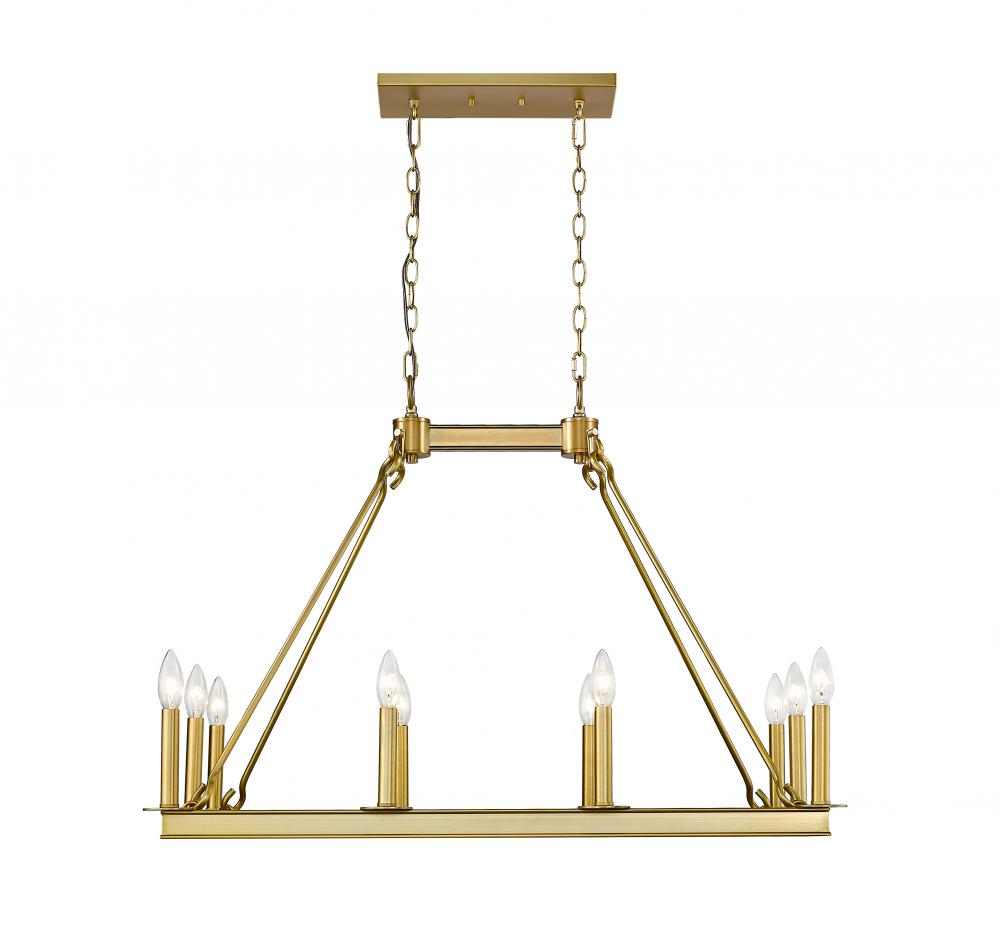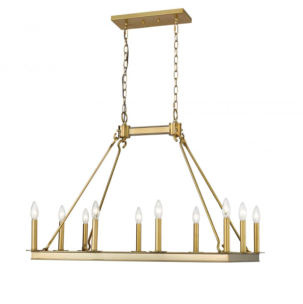 This grandiose ten-light island/billiard light is the perfect addition to your home lighting collection. Its crafted in a gorgeous olde brass finish and features the candle-inspired lights in an eye-catching rectangular design. Its the ideal light for the dining room, foyer, kitchen, or entertainment room.