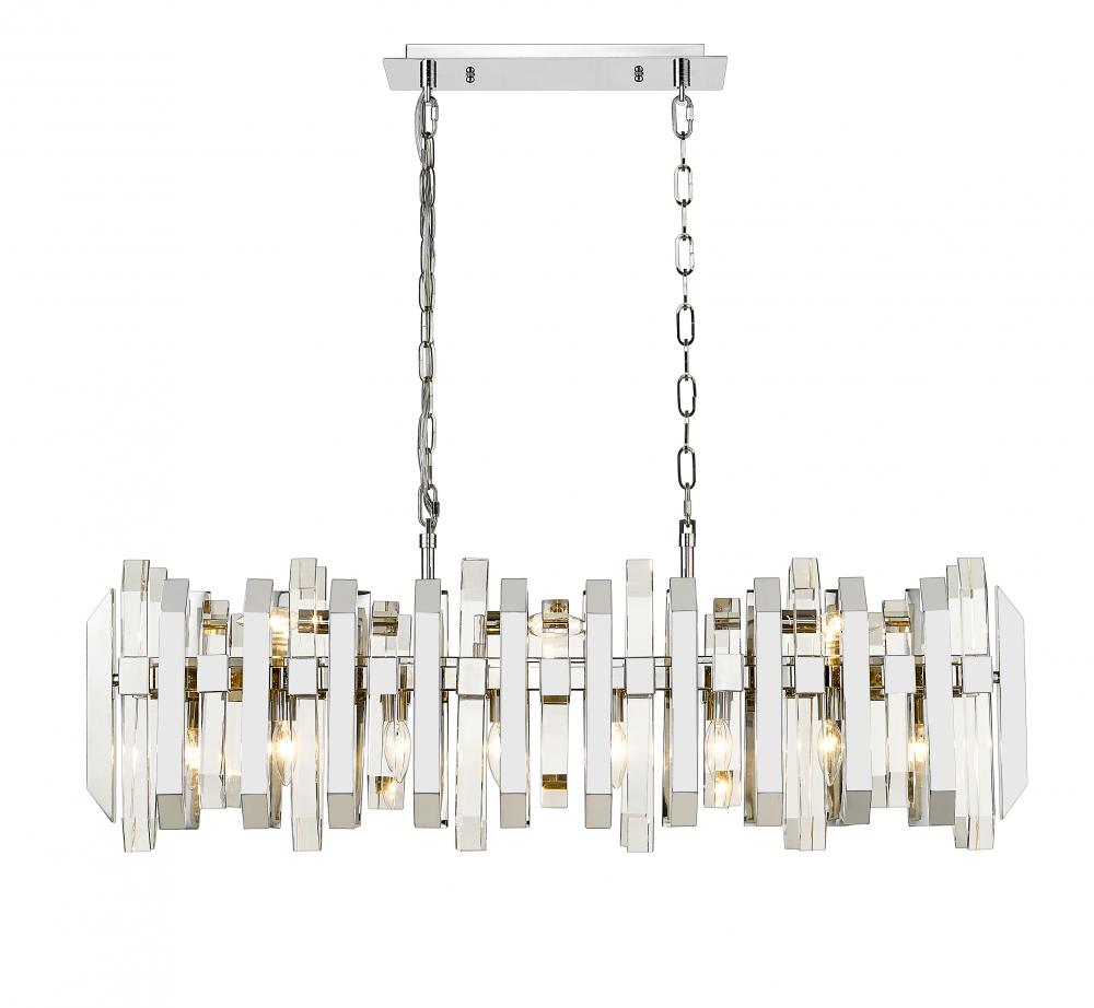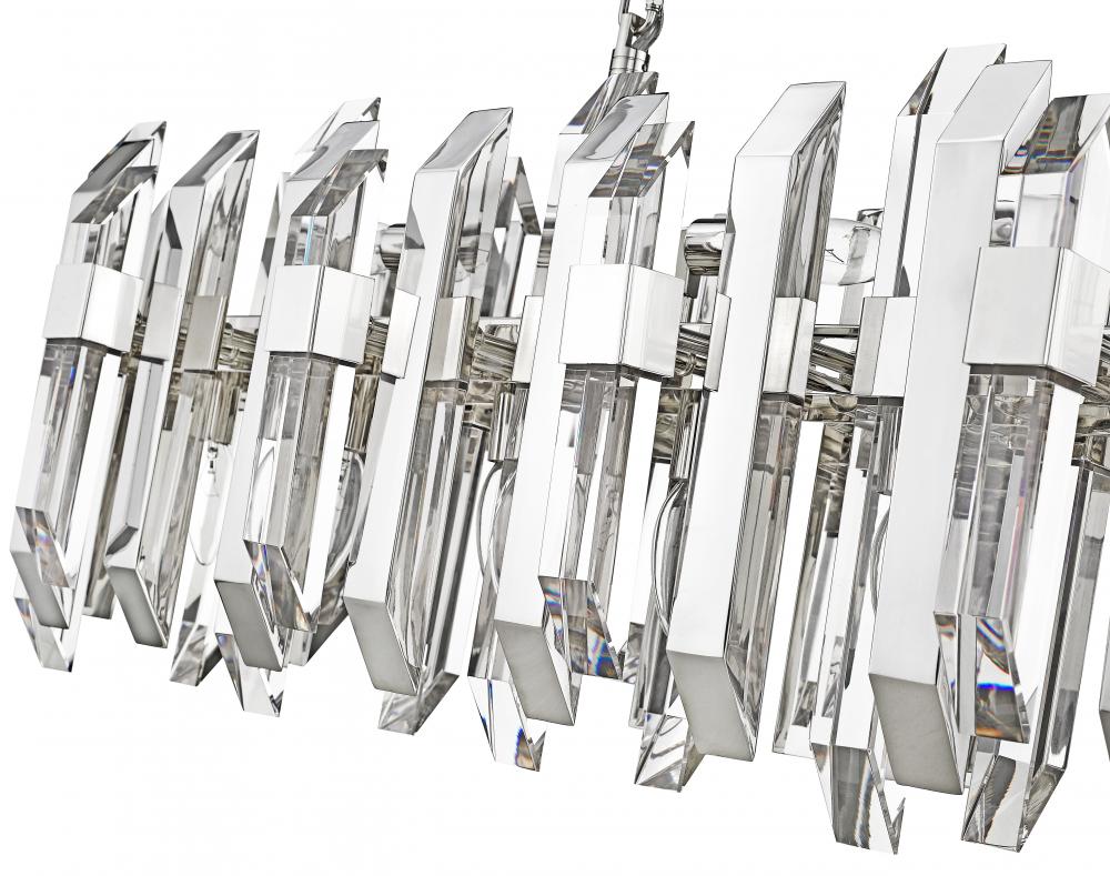 Add some sparkle to a kitchen or game room with this exquisite, clear crystal island pendant. This stunning fixture flaunts eleven glowing lights that glisten and gleam against the dazzling crystal shade and shining polished nickel frame.
