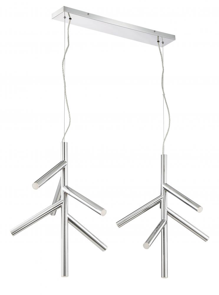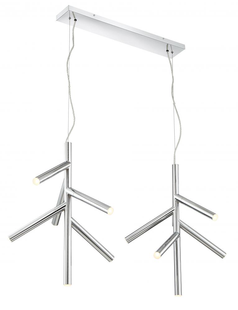 Inspired by modern sculptural design, these two chrome hanging pendants impress with sleek lines. Configured in an interesting pattern, the tubed shapes are complete with dimmable LED lights.