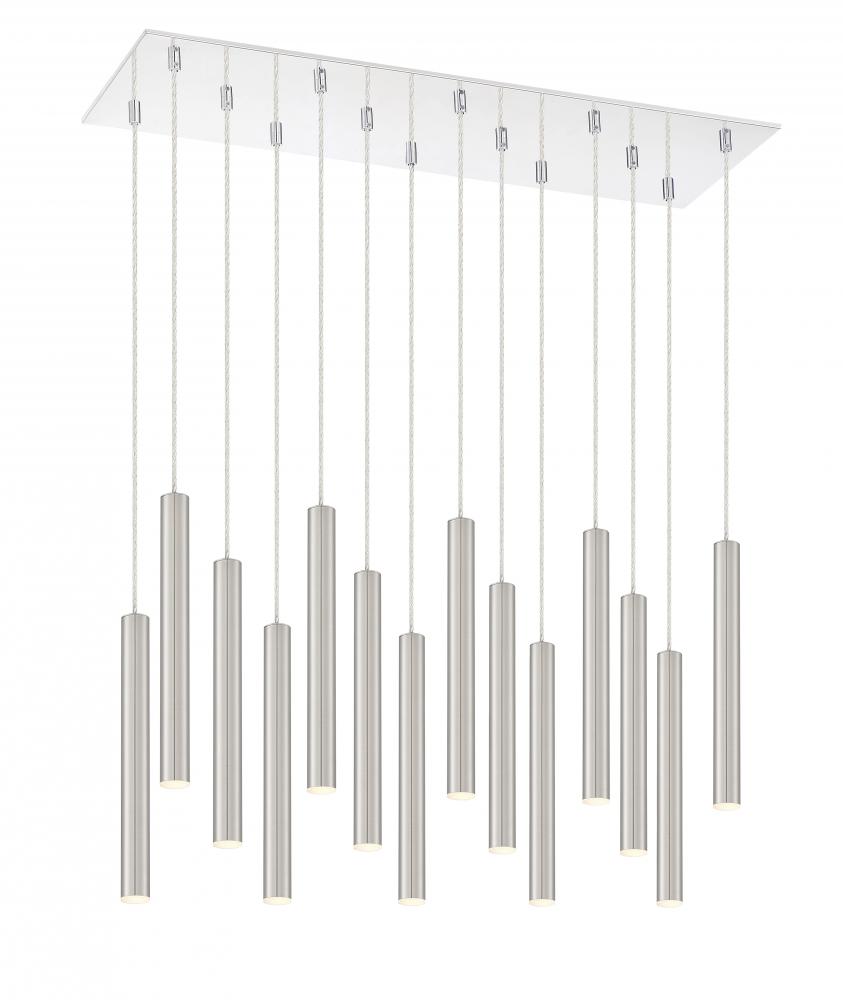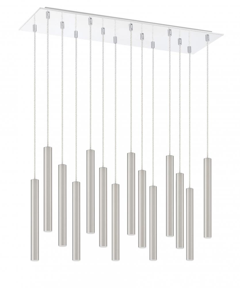Add sophistication with the sleek and clean lines from this fourteen-light pendant light. Beautiful in a modern bathroom or hallway, the windchime-inspired silhouette dazzles with a radiant brushed nickel finish.