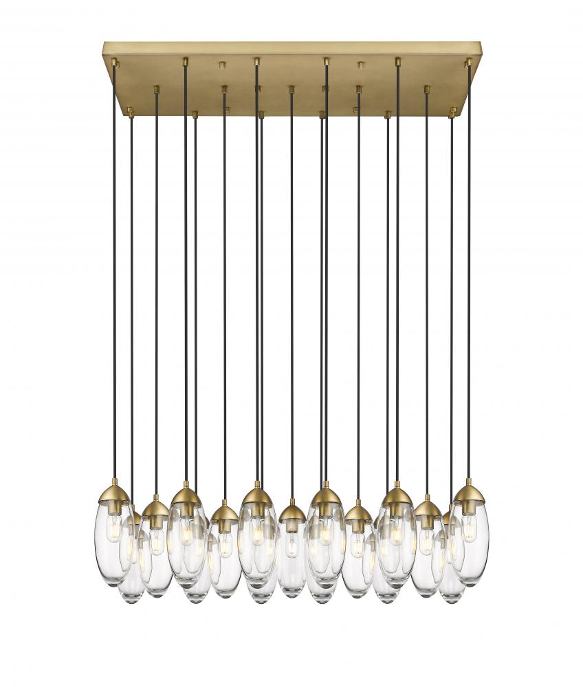 Sensibility and artistry intersect with glam influence as this exquisite 17-light chandelier highlights an island space or dining area. A sense of organic decadence follows dangling oval glass shades in an orderly cluster that delivers simplicity for a calming effect. Choose this chandelier featuring sparkling glass and rich rubbed brass finish metal, an enticing blend created for impact.