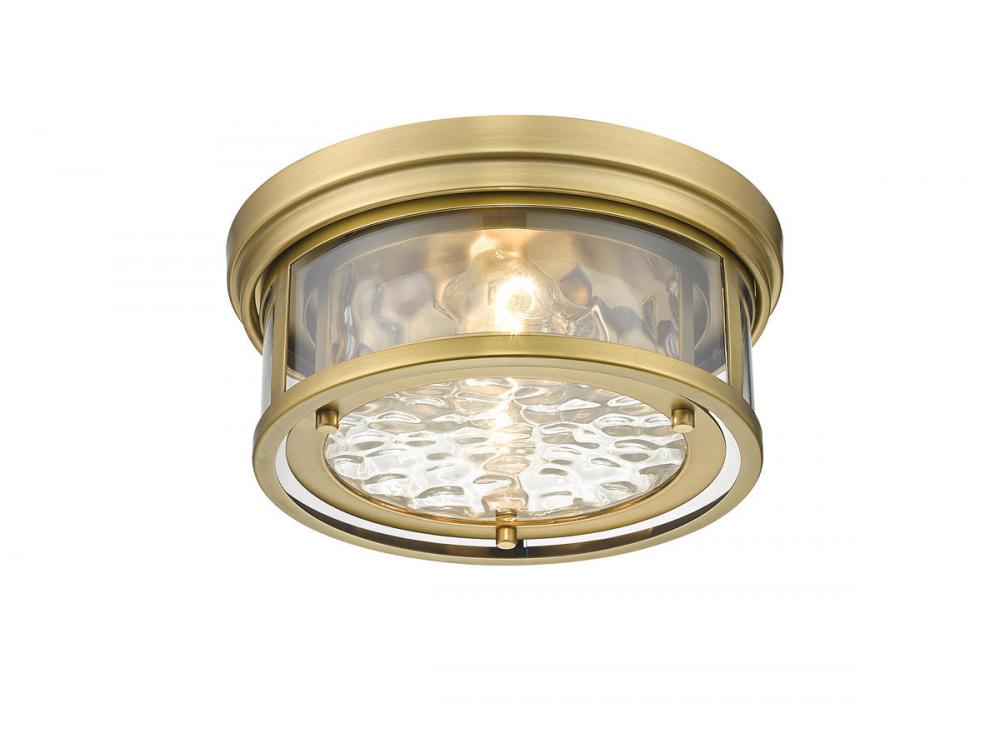 Both contemporary and classic in design, this two-light flush mount light with a clear water glass shade is a lovely lighting solution for your entryway or bedroom. A round silhouette in a polished nickel steel frame provides a clean design that blends with your existing decor.