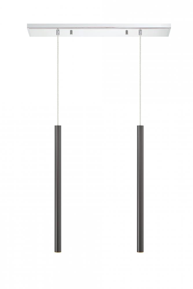The perfect combination of bold and delicate, this two-light pendant light emits a soft glow. Sleek and streamlined, the clean lines of the silhouette are dressed up in pearl black.