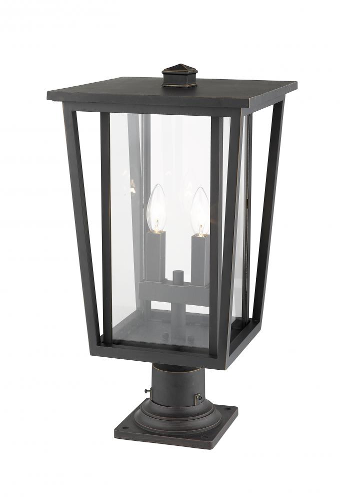 Striking and chic, the Seoul collection of outdoor fixtures updates the classic lantern look and gives it modern makeover. Special cut clear glass panels create a unique geometric look. Finished in either Black or Rubbed Bronze, the Seoul family of fixture