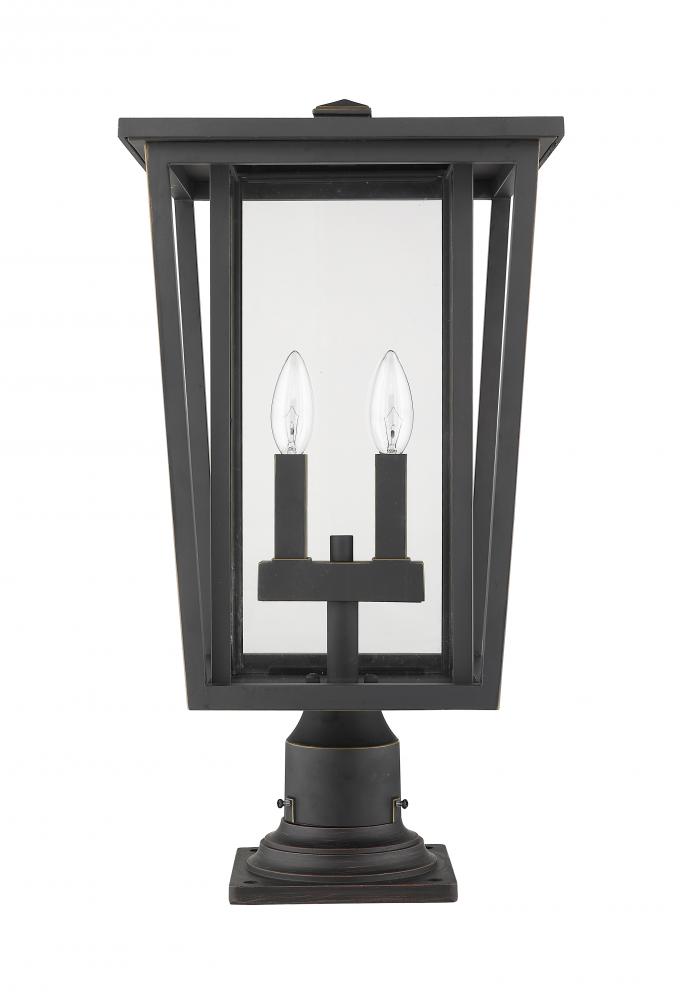 Embellish a carefully designed garden or landscaped space with the elegant sophistication of this outdoor post light. Fashioned with a rubbed bronze finish and glass shade, its interior candelabra-style bulb base changes up the motif and creates an artful impression.