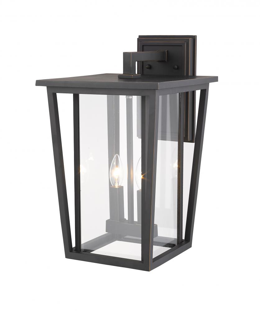 Striking and chic, the Seoul collection of outdoor fixtures updates the classic lantern look and gives it modern makeover. Special cut clear glass panels create a unique geometric look. Finished in either Black or Rubbed Bronze, the Seoul family of fixture