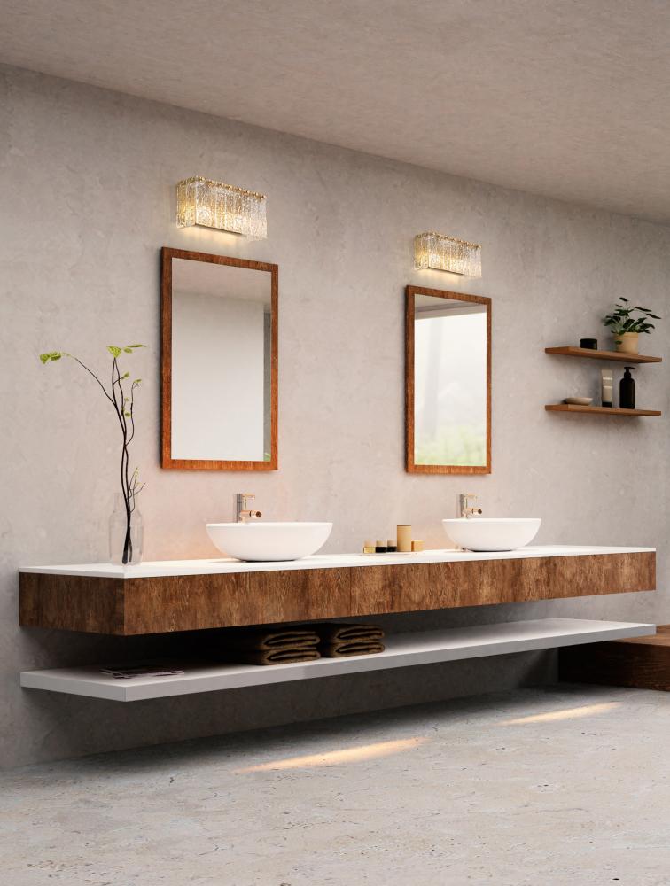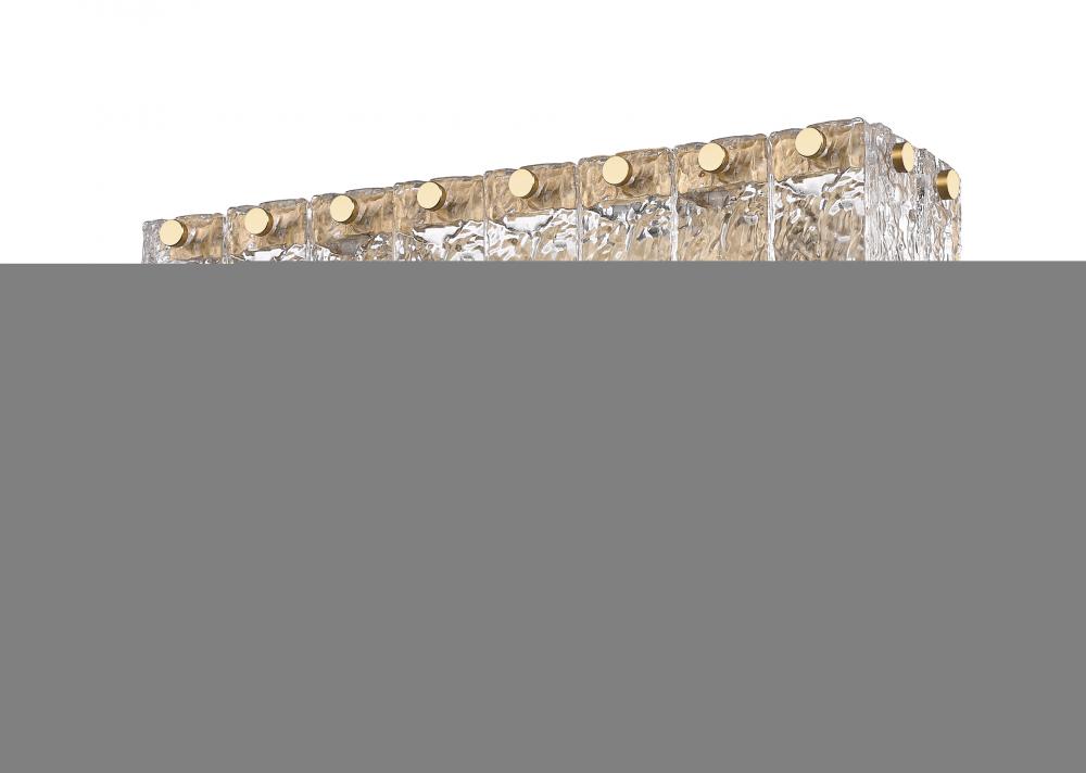 Modern gold finishing instills warm sophistication in this modern two-light vanity bath light. Its linear frame is crafted in durable steel, while vertical panels of clear textured glass evoke melting ice to bring incredible dimension and detail to your space. A perfect upgrade for a contemporary vanity in your primary or guest suite.