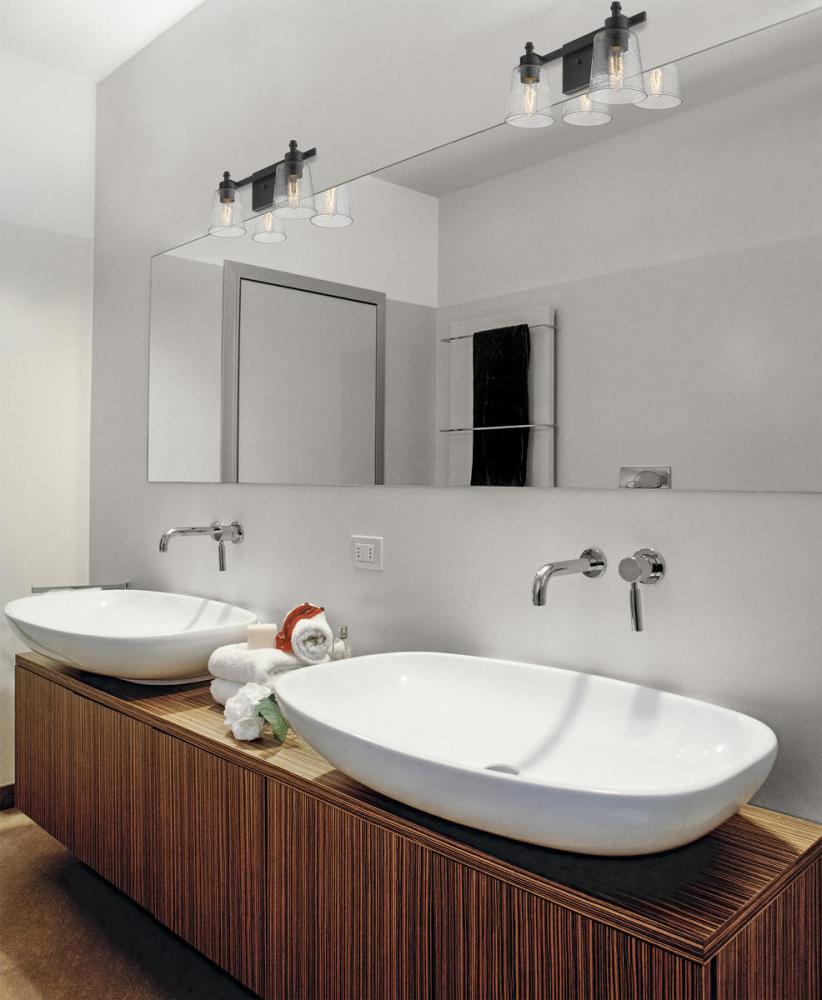 The Bohin collection combines clear seeded glass shades with contemporary styled fixtures. Finishes include matte black or brushed nickel.