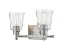 Dynamic design influence creates an ideal blend of contemporary and transitional in this matte black finish two-light wall sconce. A rugged steel frame receives softening elements in a pair of heady clear seedy glass bell shape shades, yielding a wonderfully versatile decor accent and a convenient extra source of lighting.