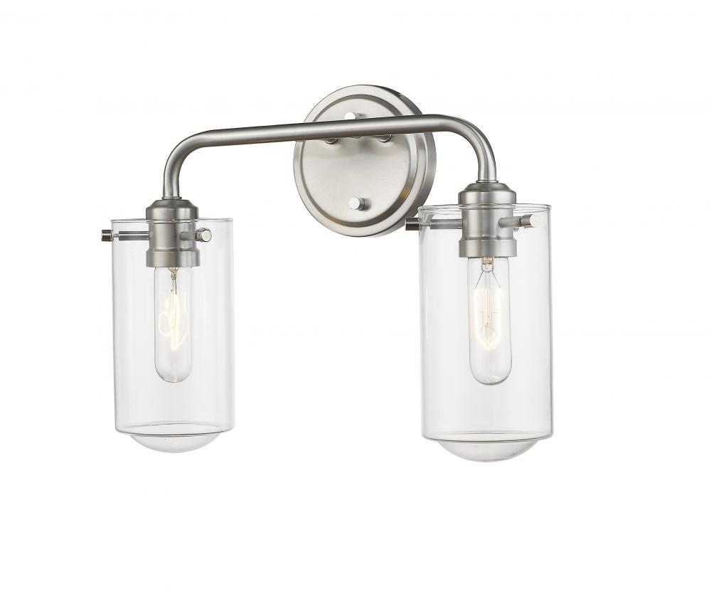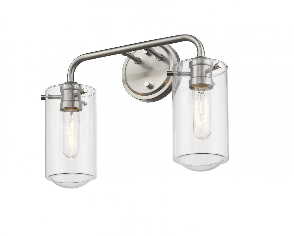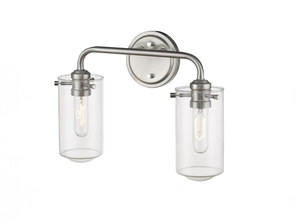Blend artistic style with an industrial flavor to bring classic good looks to a transitional space. This brushed nickel two-light wall sconce brightens any room or hallway as it adds a radiant flavor.