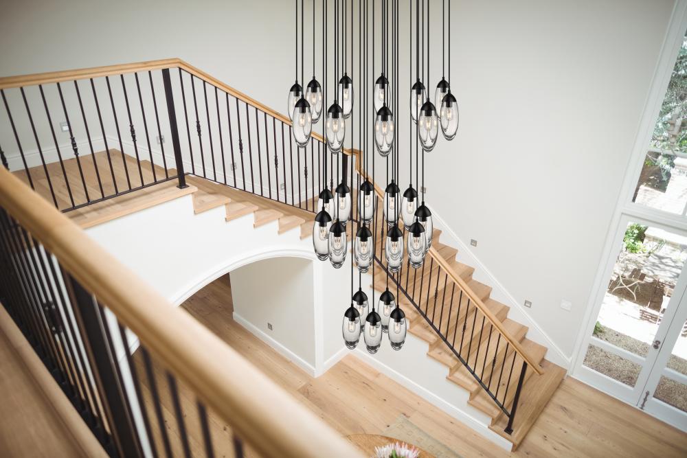 Light reflection plays an enduring role in the design factor of a light fixture with an authentic organic personality. Glam goes a bit easy with this 27-light rounded chandelier representing tempered minimalism as it delivers versatility and artistry. Marvel at the radiance of teardrop glass shades dangling in a circle at graduated lengths from a round matte black finish metal canopy, becoming a focal point in a dining room, living space, or entryway.