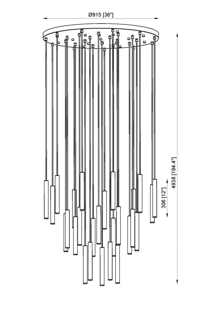 Sculpted simplicity sets the tone for this modern 27-light LED chandelier with staggered lights. Its round canopy and brushed nickel finish are compelling in their versatility, offering a fresh perspective to a fixture that augments any living or dining space. Its sculptural waterfall silhouette is a refined touch, perfect for staircases, high-ceilinged living areas and beyond.
