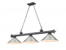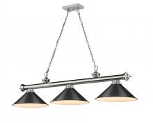 The elegant sheen of a brushed nickel finish adds an edge of modern glamour to this three-light steel billiard light. Place this eye-catching fixture over a kitchen island, dining table, or pool table to add a balanced aesthetic to interior d?cor.