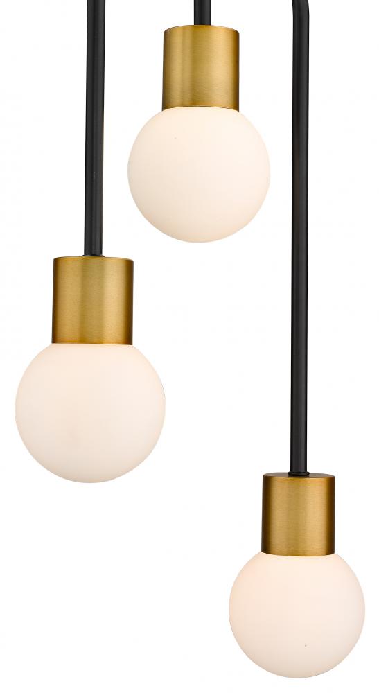 Add to the splashy ambiance of a midcentury styled space with the Neutra Chandelier. An arrangement of globe orb shapes, accented by long, curved lines makes this Chandelier perfect for a dining or living space. Available in a matte black frame accented wi