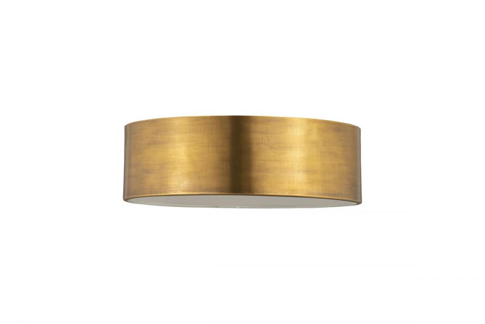 Inspiring with an easy, casual feel, the Harley modern three-light flushmount ceiling light delivers simple elegance with a hint of industrial design elements. A simple ring silhouette forms its drum shade made of warm rubbed brass finish steel, creating a versatile fixture for a low-key but tasteful look in a kitchen, dining space, or living area.