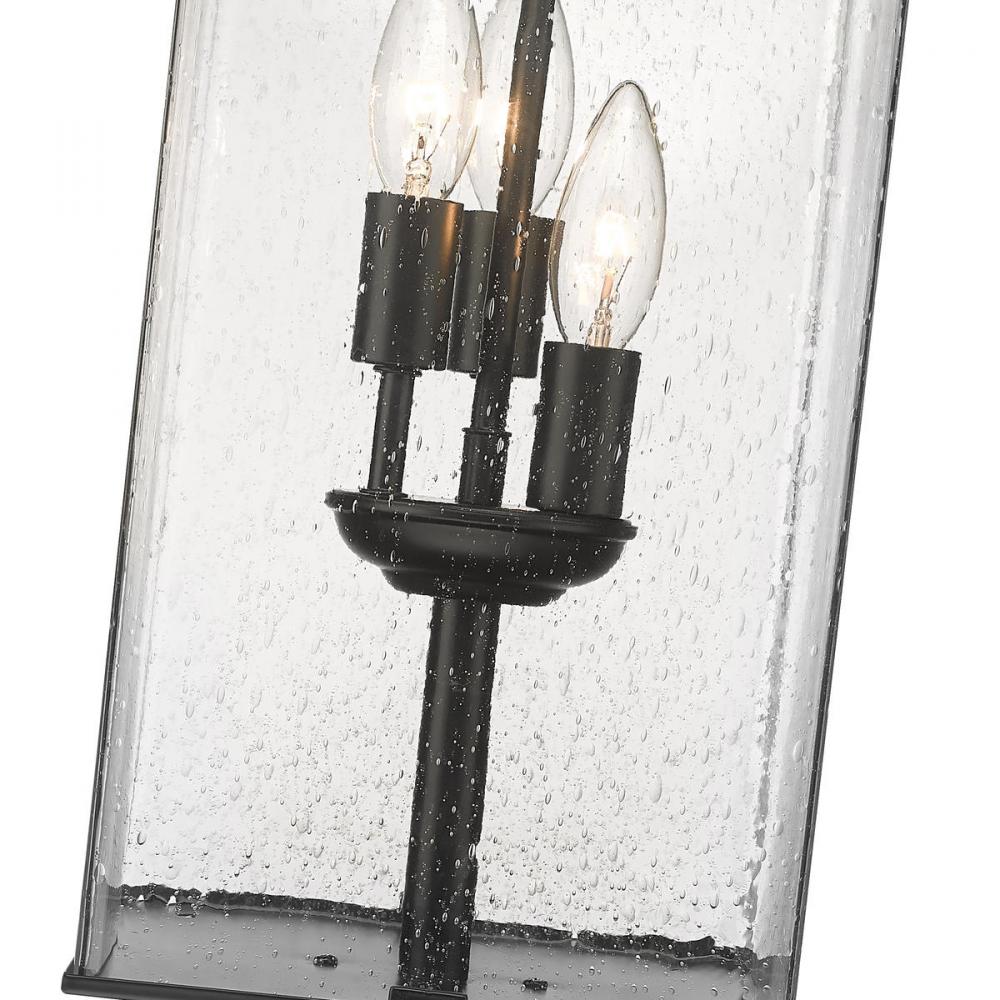 This sleek, coastal-inspired three-light outdoor pier-mounted fixture in black features will look perfect on your porch or patio. Coming with a black finish and seeded glass shade.