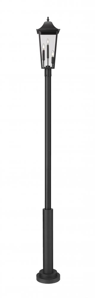 A charming post pairs with candelabra lights in a charming traditional three-light outdoor post mount fixture. Beautiful tucked into your garden or gracing a walkway, it features a durable Coastal black finish paired with beveled glass for a look thats truly timeless.