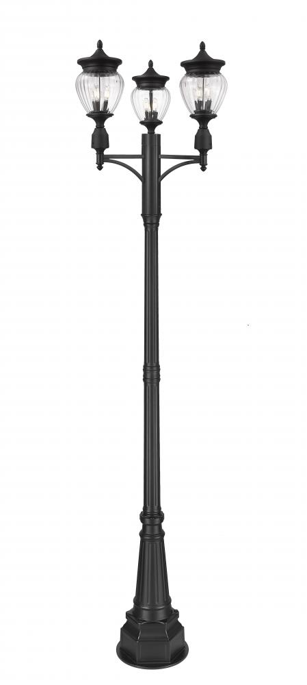 Teardrop glass shades create a unique look and feel for this charming three-light outdoor post-mounted fixture. Each of nine lights casts bright ambient illumination, perfect for strolls on garden paths and setting an inviting first impression on your front walk. A black finish is stylish and versatile, complementing your exterior to perfection.