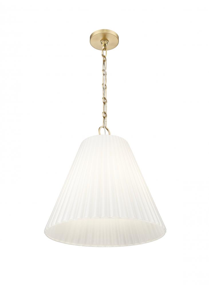 The finely fluted texture of the frosted glass shade on the Alaric pendant offers subtle sophistication that complements the design elements of the pendants. Alaric can be ordered in a choice of Polished Nickel, Matte Black, and Modern Gold finishes to com
