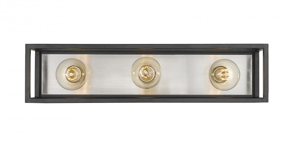 Give your home lighting a bold, edgy upgrade with this two-tone three-light vanity. It features a classic matte black and brushed nickel finish with an austere rectangular design. Youll love how it energizes a bathroom or powder room with its panache and glam.