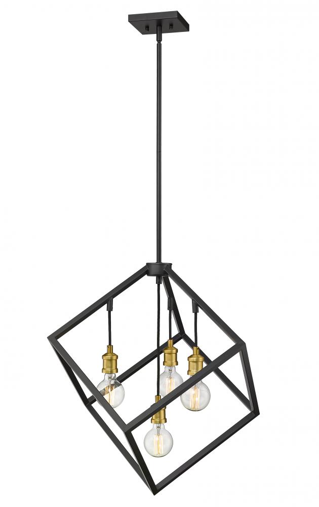 Youll love the clean modern edge that this two-tone four-light pendant adds to your home. It features a bronze and olde brass finish with the lights inside a single cube-shaped shade for a dynamic look and feel. Its a vibrant light designed to transform any dining room, hallway, bedroom, or kitchen.