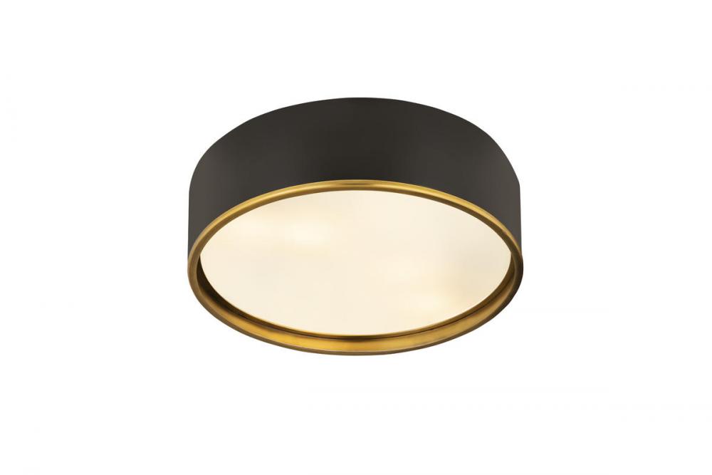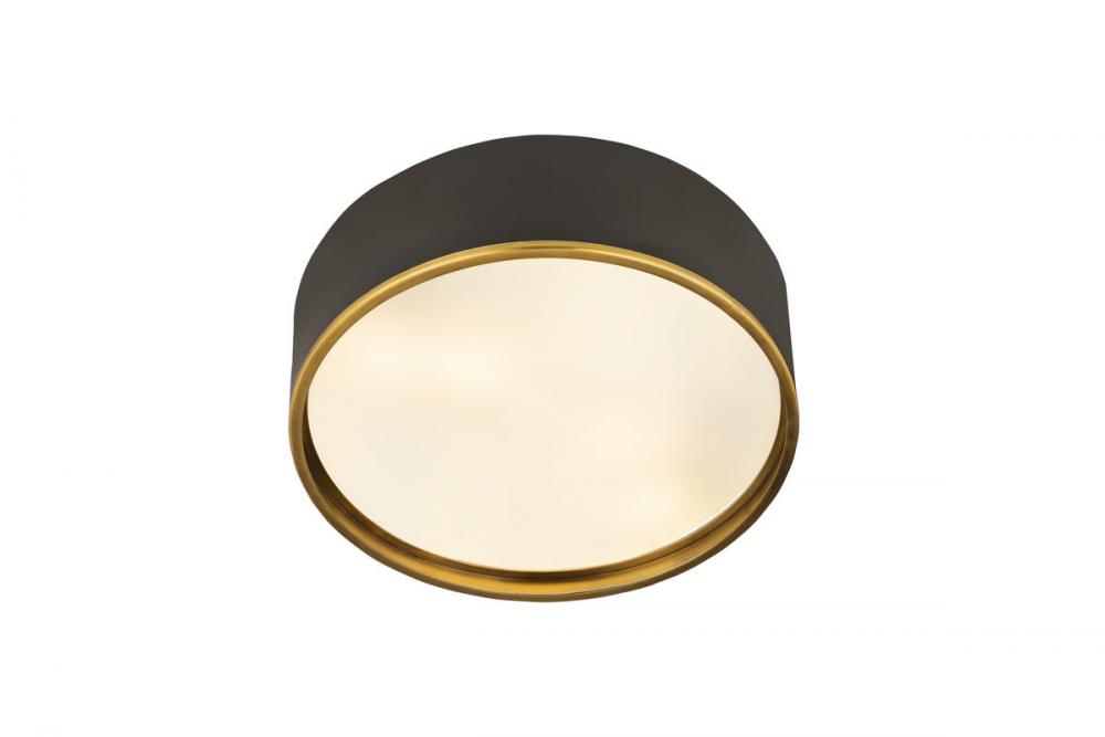 Its easy to make a contemporary statement with this four-light flush mount fixture. Four bulbs make for maximized illumination in your space. The matte black shade is designed from steel with an eye-catching rubbed brass trim, offering the perfect pick-me-up for small foyers, hallways, home offices, and more.
