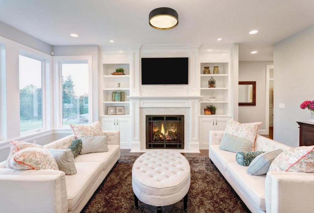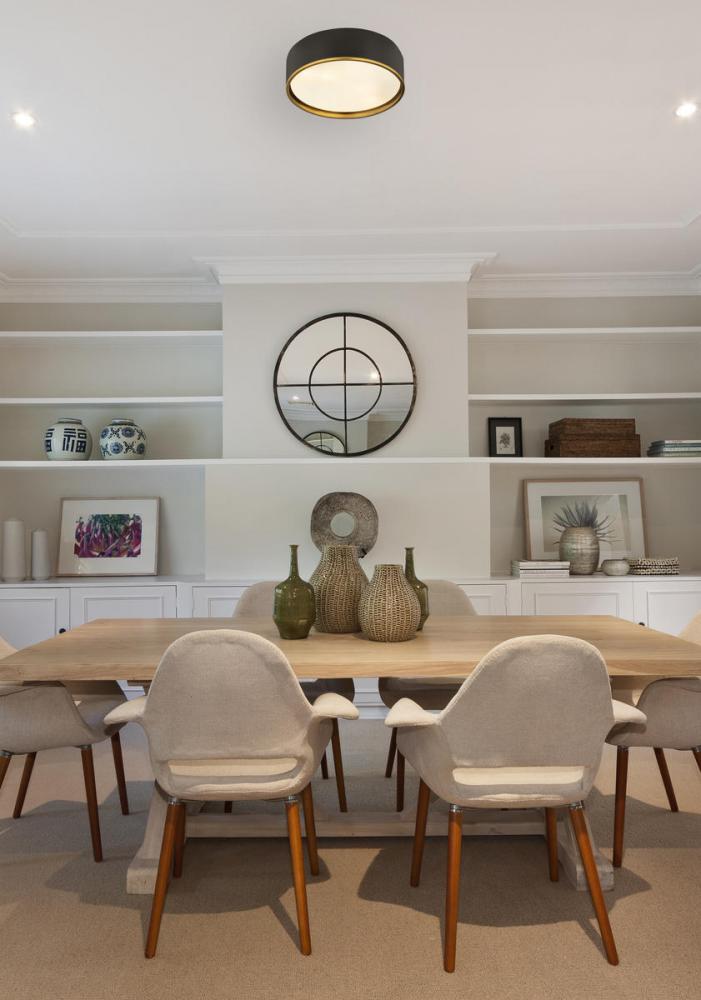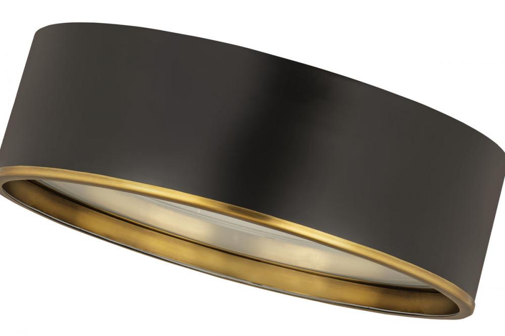 Bold and modern defines this flush mount, which features a two toned metal shade and stepped diffuser. Its bold but understated style makes this a versatile modern ceiling light fixture for any room in your home.