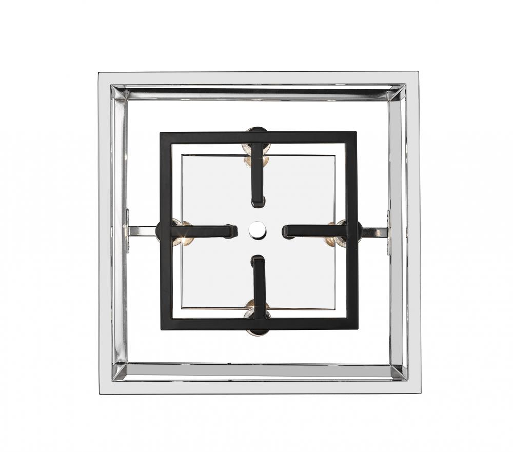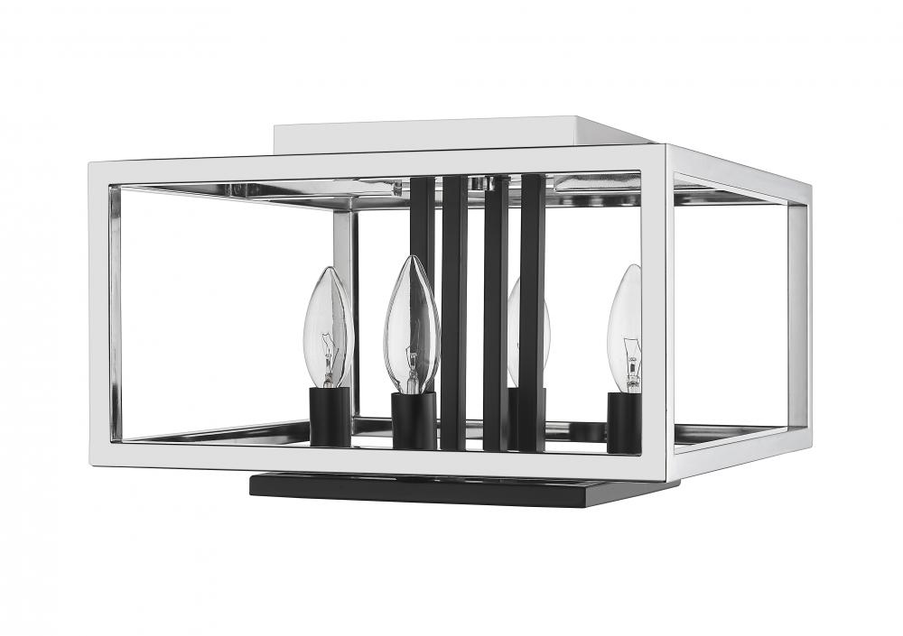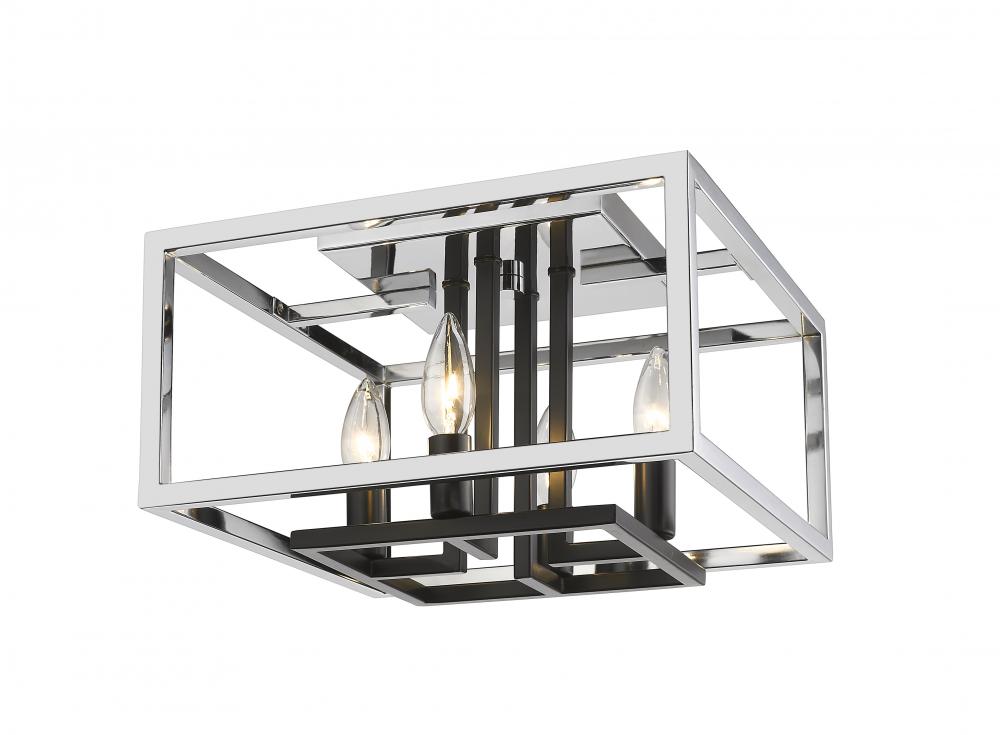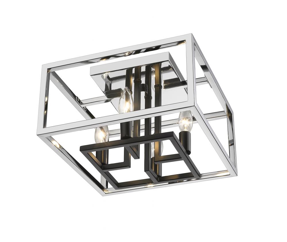 Take style to the edge as you accent a contemporary kitchen or living space. With a tasteful open geometric silhouette, this chrome and black four-light flush mount ceiling light adds an expressive attitude and a stylish way to send radiant light around a modern space.